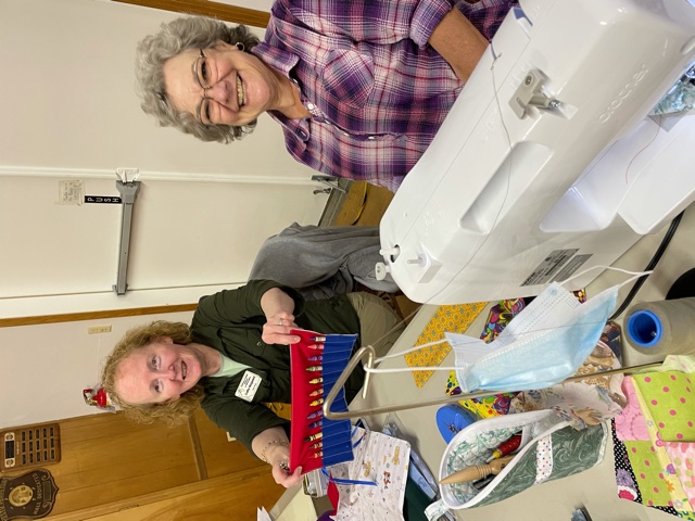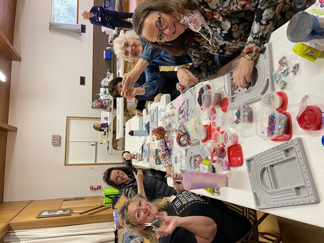 This meeting was dedicated to sewing and making donations for the charities our club supports. Members broke into groups to create the items they wanted to work on. Some were making jewelry for dolls that are donated to Wishing Well at Christmas. Some were working on bags to hold clothes for the dolls. Some were making car mats for boys for Christmas. Others were making pencil or crayon holders.